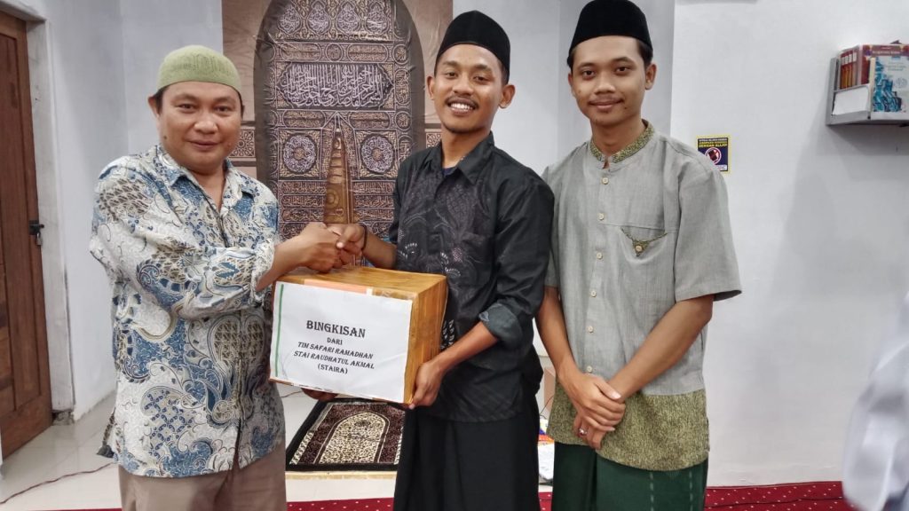 Keterangan: Penyerahan bingkisan secara simbolis dari Tim Safari Ramadhan STAIRA Deli Serdang kepada perwakilan pengurus Musholla Ar-Razzaq.